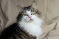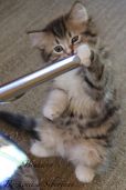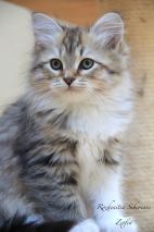 Zefira is a very elegant little lady. She has so much fluff that she looks like she is the biggest one when in fact she does seem intent on keeping her trim waist. Wet food is surprisingly of no interest to her. While everybody else would be busy eating their meal, she would take advantage of the quiet time to get all of my attention, playing, purring, and showing off her beautiful oh so soft belly!