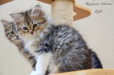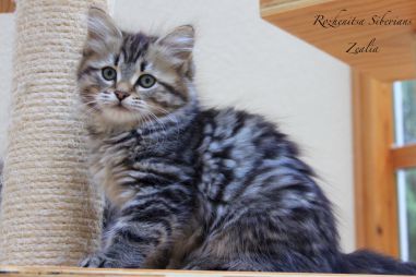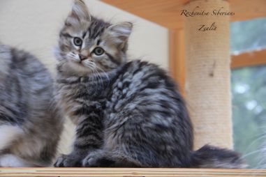 Zealia is the outgoing and outspoken one. She is the first to come greet you, and starts purring even before you have time to give her any cuddles. She is very self confident, and is a bit of a tomboy ; ) She loves food and we believe she will be a fast trick learner when treats are involved!