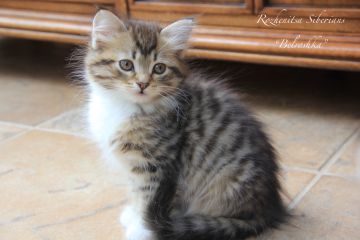 Belroshka- Black Mackerel Tabby with White- Female- Very low allergen